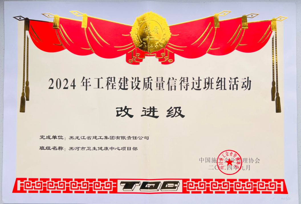 黑河市衛(wèi)生健康中心項(xiàng)目部2024年工程建設(shè)質(zhì)量信得過班組活動(dòng)改進(jìn)級(jí)